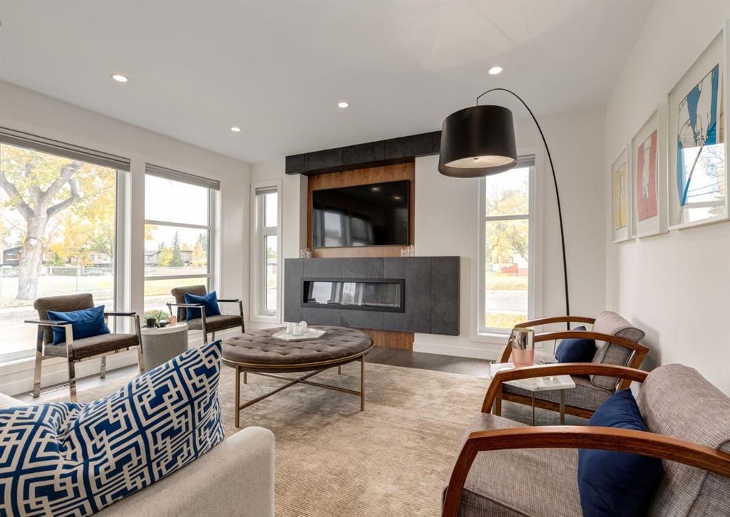 DETACHED HOME nestled on a quiet cul-de-sac in the heart of Richmond, this residence on a corner lot combines thoughtful design, a unique floor plan, and an unbeatable location. With parkside views and an abundance of natural light, this home is just steps to schools, public transit, and all the shops and restaurants of vibrant Marda Loop. The main floor is anchored by a full-width family room with custom fireplace millwork and a striking glass feature wall around the staircase. The chef’s kitchen offers a butler’s pantry, stainless steel appliances, a large gas range, quartz countertops, under-cabinet lighting, and a spacious dining room with patio doors that open onto the WEST-facing backyard. Here, a huge deck with gas lines for both BBQ and fire pit makes the perfect setting for entertaining. Upstairs, the primary retreat overlooks the green space with City skyline views. A large walk-in closet connects to the spa-inspired ensuite, complete with heated floors, dual vanities, soaker tub, curbless shower, and private water closet. Two additional bedrooms, a full guest bath, and a laundry room with sink complete this level. The fully developed lower level features a rec room with wet bar, a generous guest bedroom, sleek bathroom, and ample storage. Additional highlights include engineered hardwood flooring, ceiling speakers, built-in benches, custom millwork, air conditioning, and a fully insulated double garage with tire rack. Meticulously cared for by the original owners, this home is move-in ready. Floor plans and a 3D tour are readily available, providing a glimpse into this stylish home!